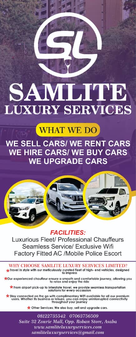 Welcome to Samlite Luxury Services Limited, where luxury meets efficiency. Whether you’re traveling for business, leisure, or an important event, our fleet of high-end vehicles and professional chauffeurs are here to elevate your travel experience. Enjoy seamless airport pickups, interstate transportation, and premium chauffeur services designed to meet your every need. For our premium users, enjoy complimentary Wi-Fi during your ride, ensuring you stay connected while on the go.